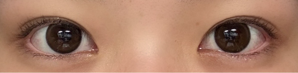 ガッツリ黒目&奥目ですが、ほんのり茶色にしてくれてフチも意外と馴染むのでおめめきゅるきゅるになりました!!👀