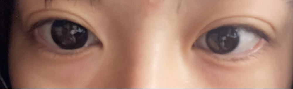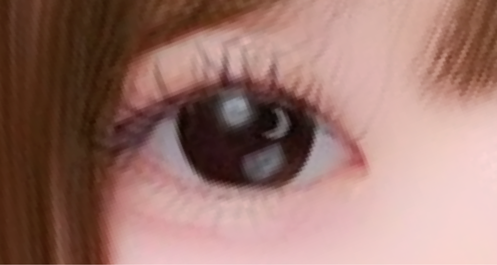 目のドアップ失礼しますm(*_ _)m裸眼との比較です。左が裸眼で右が装着時!ノーマルカメラ。