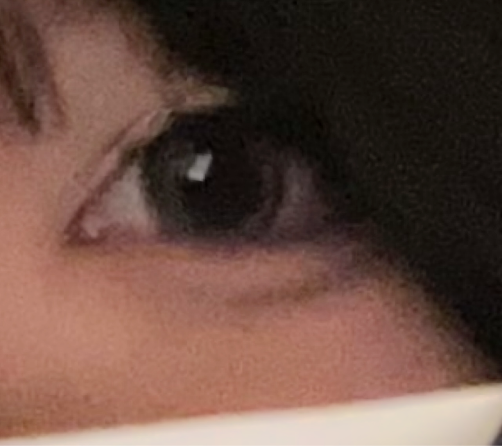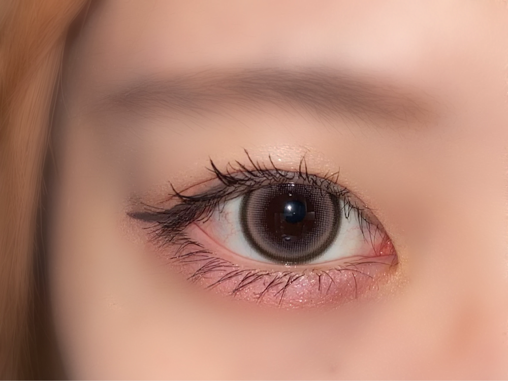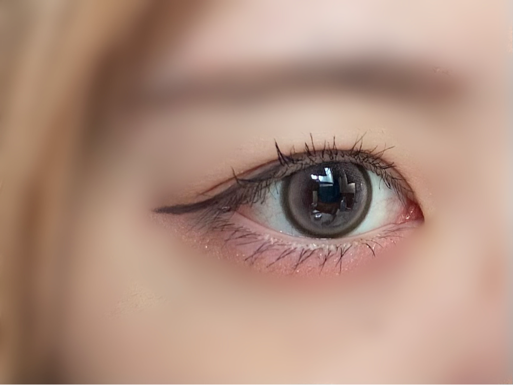 ピンク感はそこまで強くなくて使いやすいです‼️光が当たったらくっきりふちが見える!普段も黒目寄りでも結構はっきりふちがみえる感じです