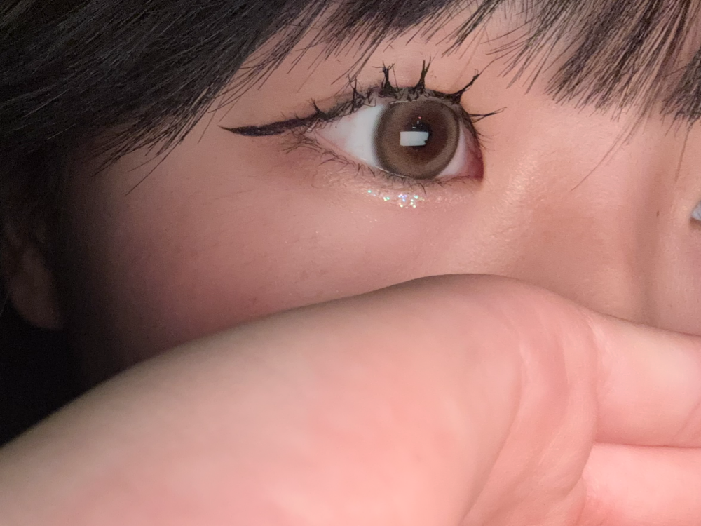 奥二重なのですっぴんでカラコンつけたときは宇宙人にならないか心配だったけどアイライン、まつげとラメしたら結構馴染みます👍