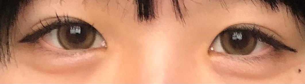 他のカラコンと左右で付け比べて見ると、コレは何となく目玉の位置が下がって見えて良かった!