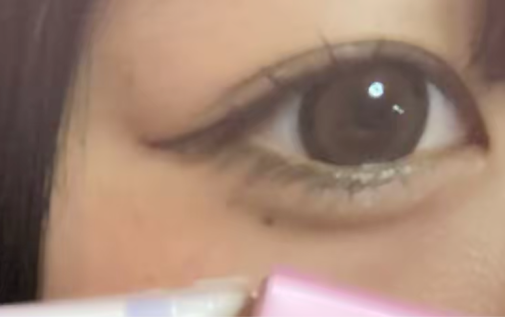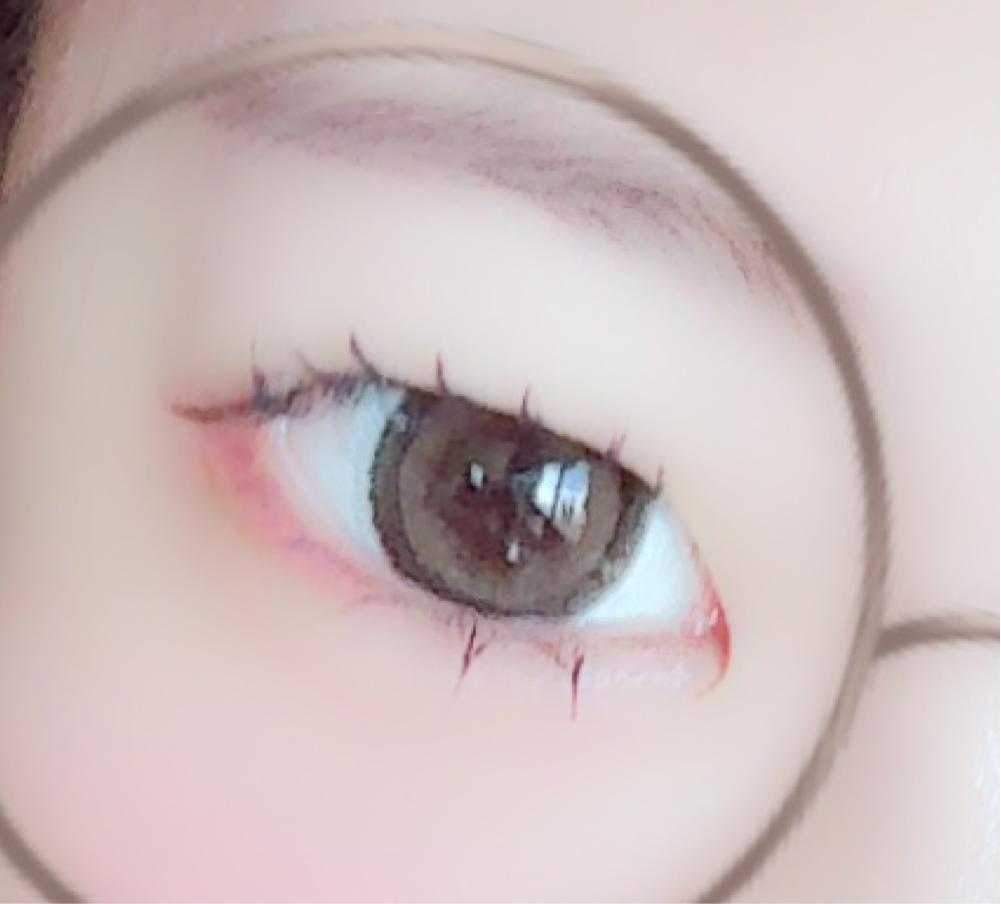 内側にちょっと明るい色が入ってて目がツヤっと見えます!!大きいからめっちゃ盛れる!あとそんなに乾燥しなくて目が楽でした👁️わかりにくいけど1枚目モノク、2枚目びゅーぷらで撮りました