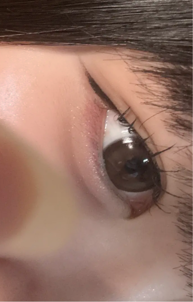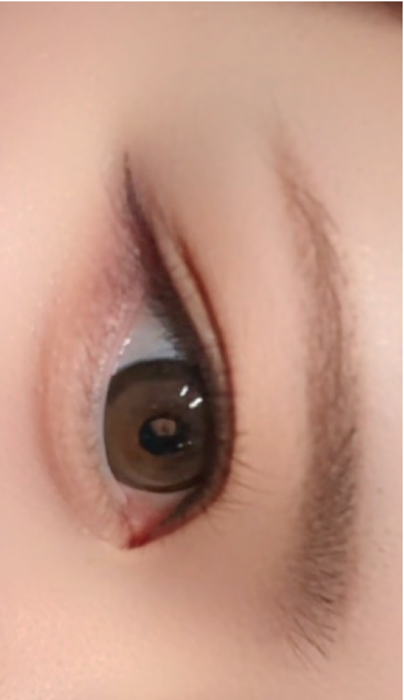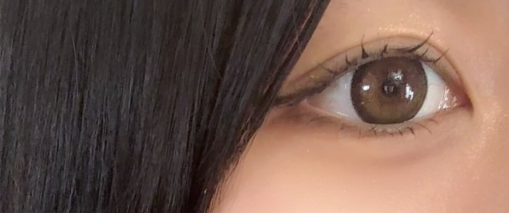 色味はベージュカラーというか結構ブラウンぽかったです!発色はあんまり良くないです。写真を撮ってやっと縁感がわかる感じで鏡をみると縁もなくなっちゃいます🥲茶目でこの発色なので黒目の方とかはベタ塗りの茶コンみたいになると思います🥲