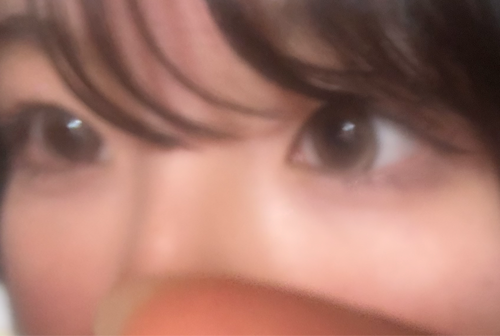室内光の下で撮りました。黒目の下側を見てもらえればわかると思いますが、ずれると黒目との境目が目立ちやすいです。でもそれ以上に色がほんっっっとにかわいいです!!!乾いてるなーと思ったら都度目薬をさせば全然問題ないくらい快適でした。