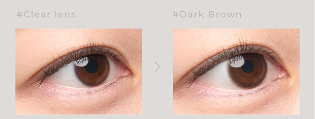 肉眼では少しグレーがかって見えるレンズは装用すると暗めのブラウンへと発色。