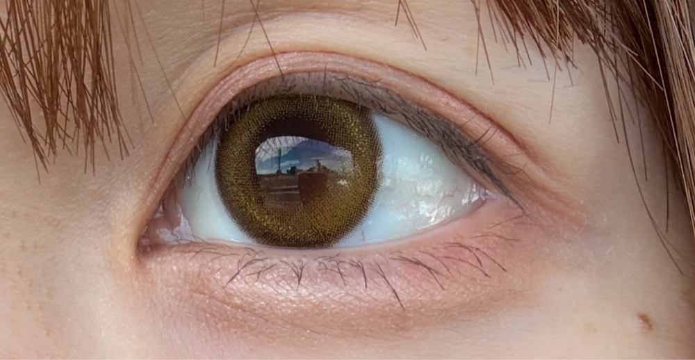 私は黒目が真っ黒なので茶目になりたくてフルーリーのバンビを長いこと鬼リピしてます。黒目の写真も載せますね。ノーメイクなので肌が汚いのだけ光で飛ばしました。室内光です。縁がぼかしてある以外、恋するバンビに似てます。リピート確定しました。茶目になりたい黒目さんには特にオススメです。