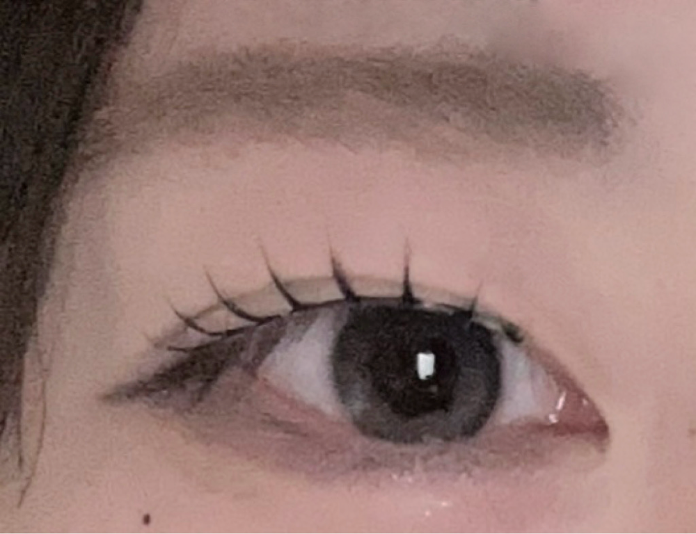 奥目+何をつけても発色しにくい真っ黒裸眼ですが、割と発色良かったです。イメージではグレージュっぽい感じなのかと思ってたけど、つけてみたらグレー感が強かったです。多分裸眼が私より茶色い方はもう少しグレージュっぽく発色すると思います。