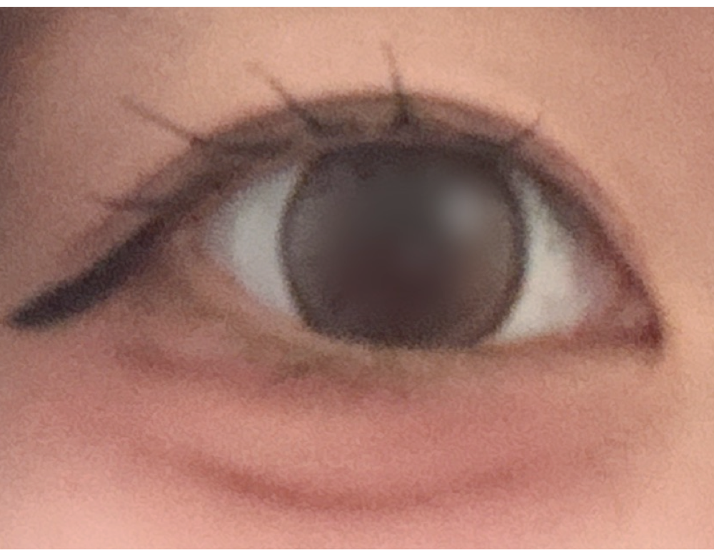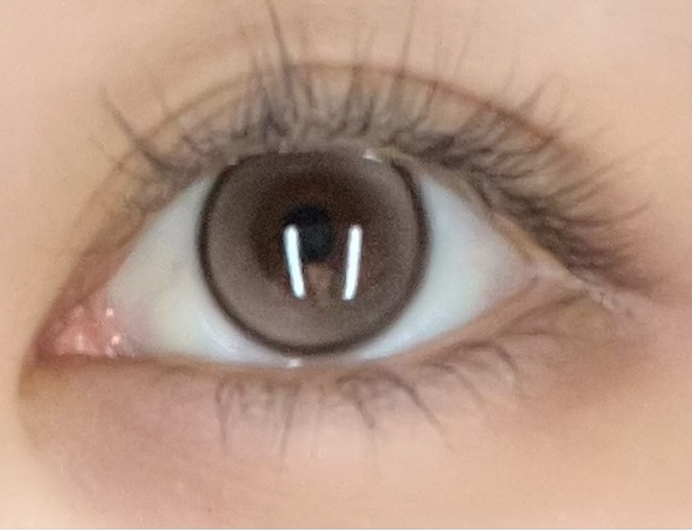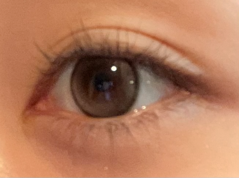 ほぼ黒目のこげ茶目です!小粒目なので普段は太フチ、13.5-13.7mmカラコンをつけています!小さく感じませんでした!細フチなのにきちんと盛れた!でも思ったより発色しなかったです😭個人的にはもっと発色して欲しかった🙀ブラウンと言うよりはアッシュピンク?のような発色でした。ハイライトが白いのでその部分だけ浮きました😭かわいいしサイズ感、着け心地もいい感じなのでリピしようかは迷い中です😽