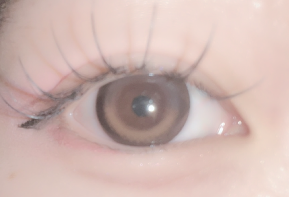 普段明るいのあんまつけないから最初つけた時派手って思ったけど、彼氏にいつものカラコンとこれかどっちがいい?って聞くとコレって言われた!︎💕︎目がきゅるんきゅるんダネってさ!みんな買いな💞私は回らなかった、着け心地はあんまり、違和感はずっとあるって感じ、あと夜になると乾燥する。たまに上にズレる( т-т)あとフチがめっちゃ濃いかな黒目だけど割と発色した