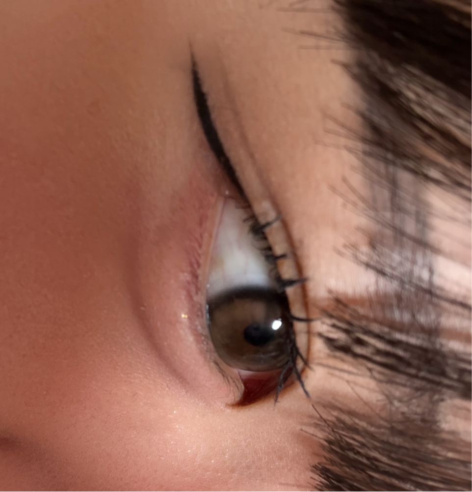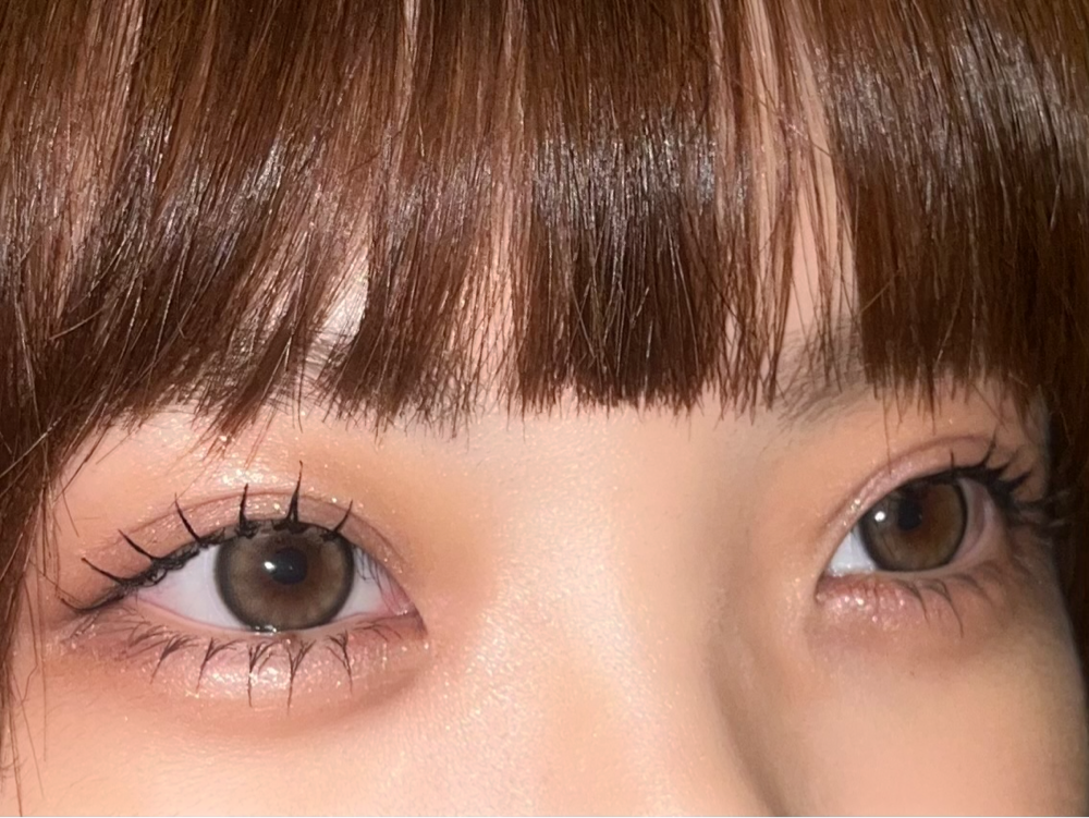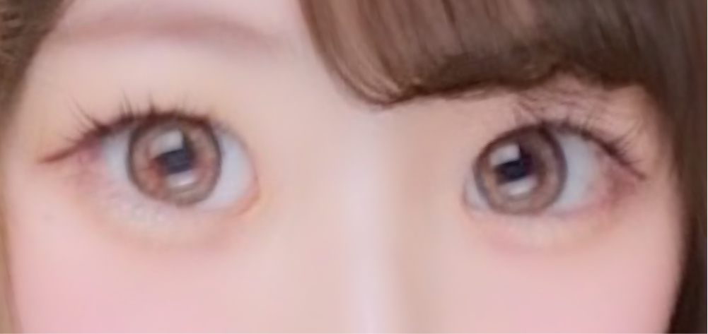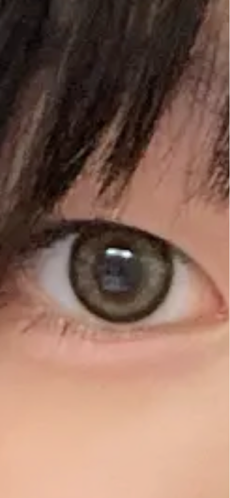 高発色で奥目解消系!サンプル画像より黄み控えめに感じます。私の目だとそんなに柄は目立たないので甘めのデザインだなと思いましたが、カラコンがしっかり発色するタイプの目だとギャルっぽく見えそうです。