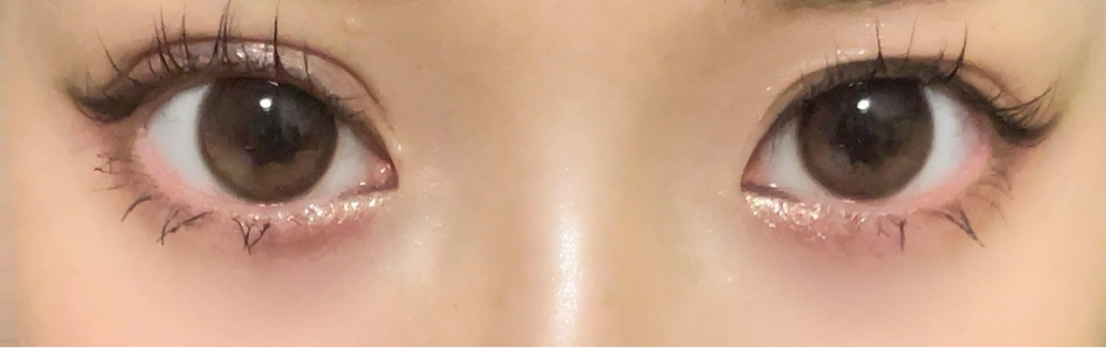 私は、シャプンの水光カラコンや、キャンマジの水光カラコンなど、いろいろつけてきましたがなかなか似合わずって感じだったんですけど、これは明るい色と暗い色の境目がぼんやりしてて、