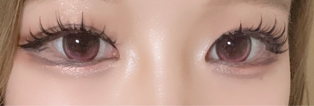 画像通りのデザインで、実物見ると「えっめっちゃピンクだけど大丈夫そ...?」と思うレンズ。恐る恐るつけてみたら、キランつるんの自然だけど目立つ可愛すぎるおメメに!!!