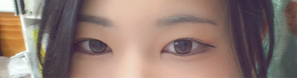 裸眼こげ茶、奥目、小粒目(縦1cm、横2.5cm)です。重度のドライアイ。