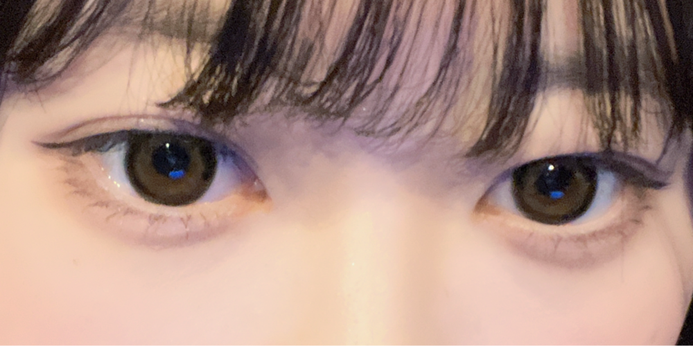 文化祭も体育祭も修学旅行も休日も、盛りたい日はほとんどこのカラコンを使ってたぐらい愛用してて、大好きなカラコンです!ずっとワンデイを使ってて、デザイン変わっちゃってるか心配だったけど、ワンマンスもデザイン変わらないと思いました!他のカラコンだと乾燥したりズレたりすることがあったけど、私はこのカラコンで1ヶ月使っても乾燥したりズレると感じたことなくて、そこも好きなところです!私は漆黒な目なんですけど、光に当たるとまあまあ発色して、当たらないとじゅわっと発色する感じです。縁がすごい太いけど全然馴染むし、可愛いです!人生カラコン!写真は左がiPhone無加工の光有りで近くで撮った写真で、右がBeRealのちょっと遠目内カメで撮った写真です!すこしでも参考になれば嬉しいです😊