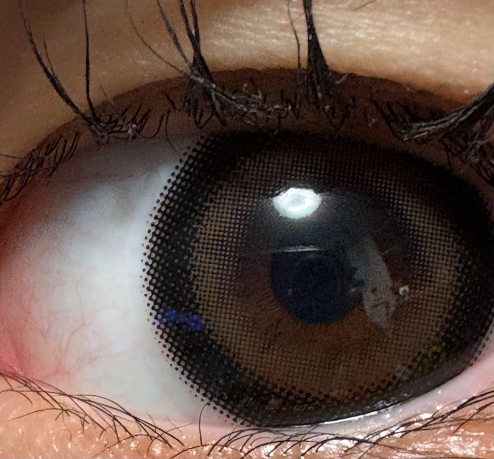 黒目だと中はグレーっぽい印象。ただ装着した瞬間ジーンって痛みがくる