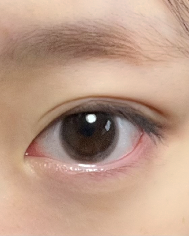すごくかわいい‼️色は割と黒っぽいけど、ふちが白目透けないぐらいにぼやけてるので自然に黒目が大きくなります💞瞳がちになってきゅーと!ただ黒いので目に光入りずらいのかなーとは思いました