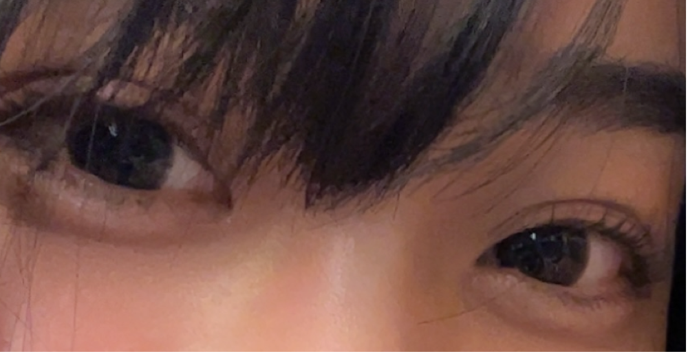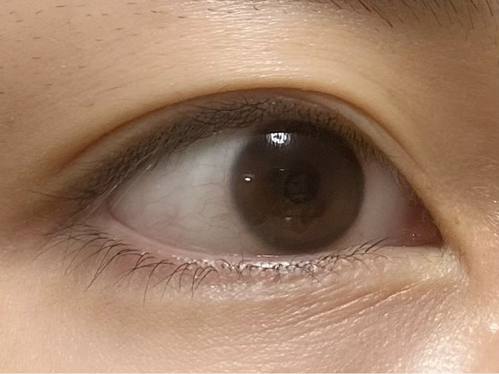 ですが、レンズの柄は好みでした。裸眼と馴染み、自然に瞳を大きく見せてくれます。