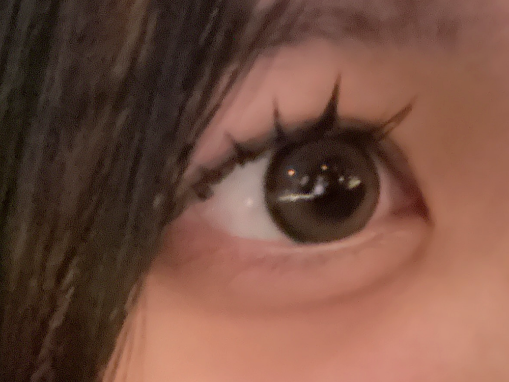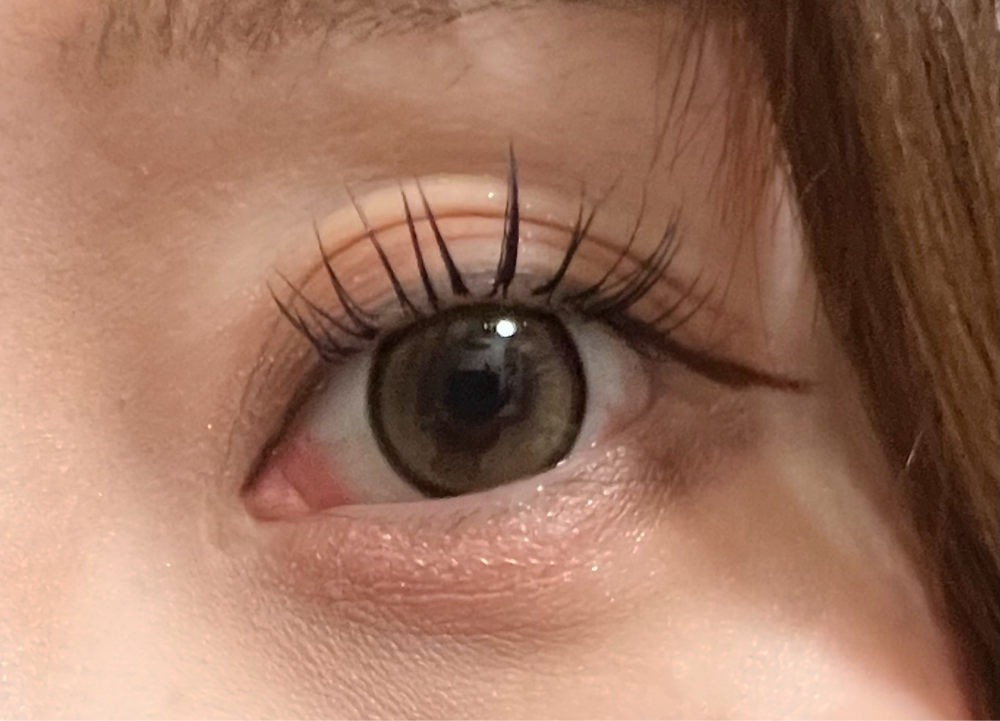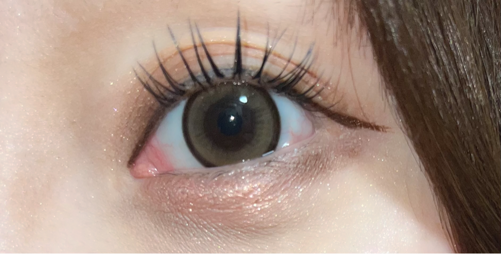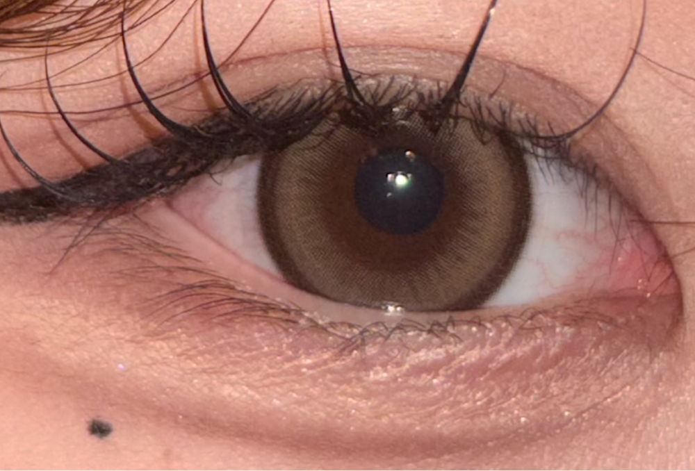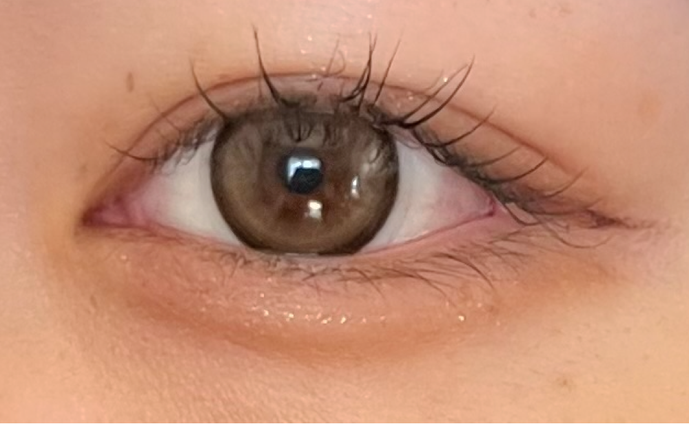 焦茶寄りの黒目ですが、しっかり発色しました。仕事終わりに撮影した為、肌汚くて恐縮ですが、しっかり色味伝えたいので無加工載せます。