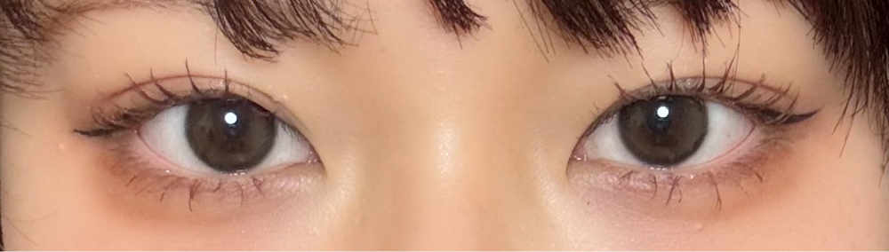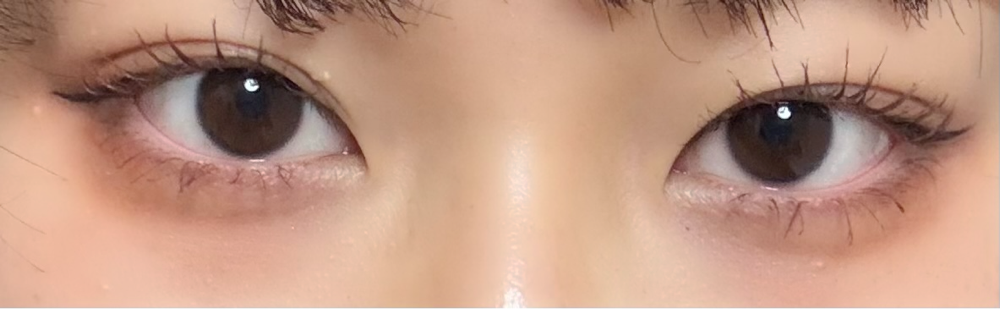 フチは近くで見ないと見えないです。遠くから見るとクリっとしてて可愛いです。パーソナルカラー問わず使えると思いました。写真は自然光で暗めの焦げ茶目です。