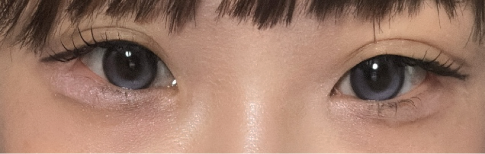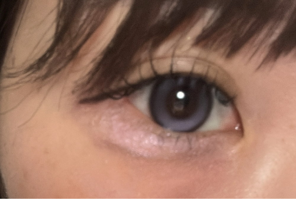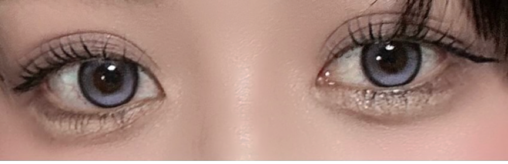 色は派手だけどサイズ感がそこまでなので、どんなメイクでも意外と馴染みます。水光カラコン特有のごろごろは全く感じませんでした。極ドライアイの自分はいつも通り目薬必須ですが、特別乾燥するとかは無かったです。