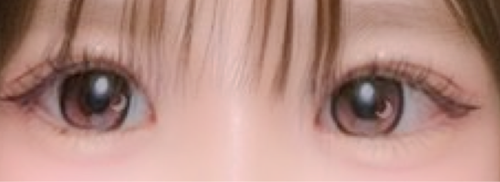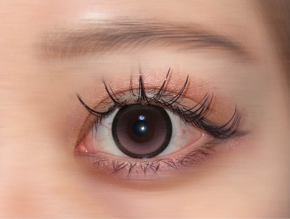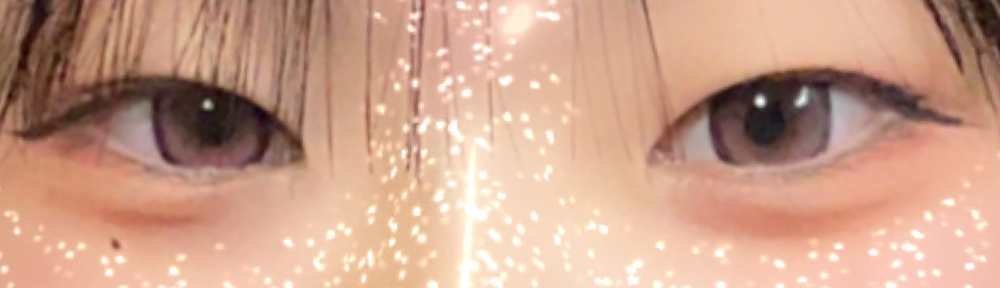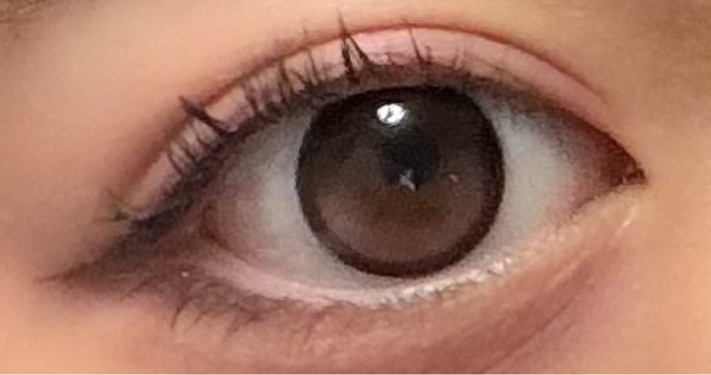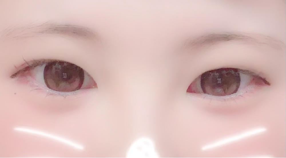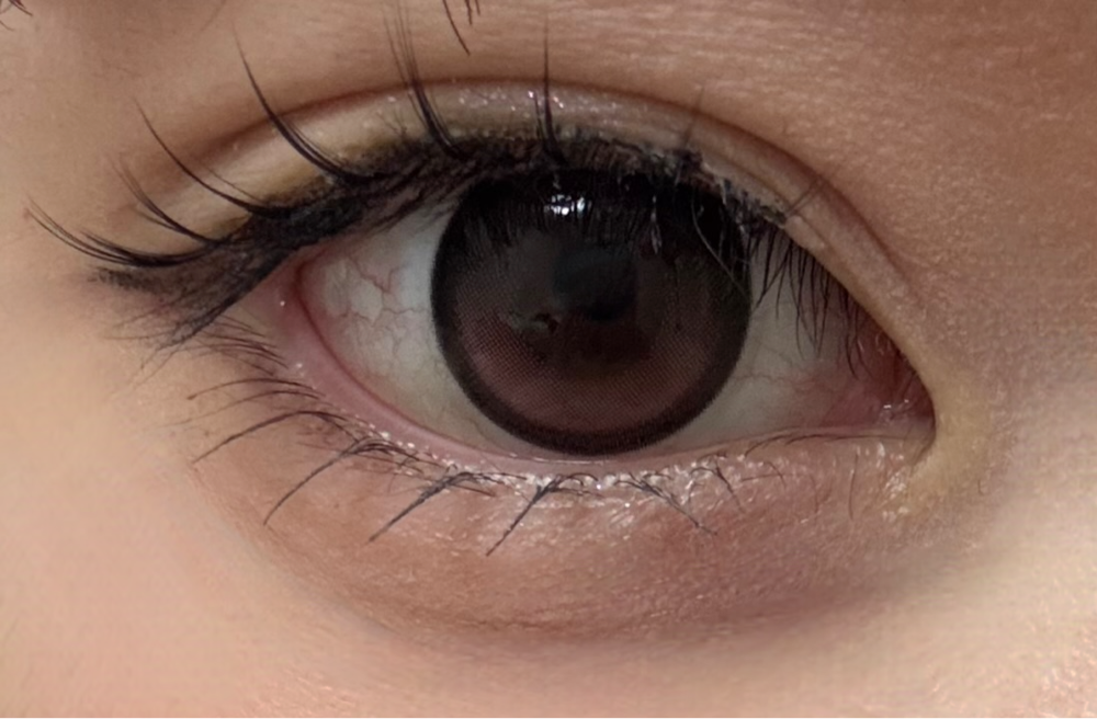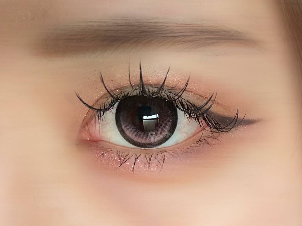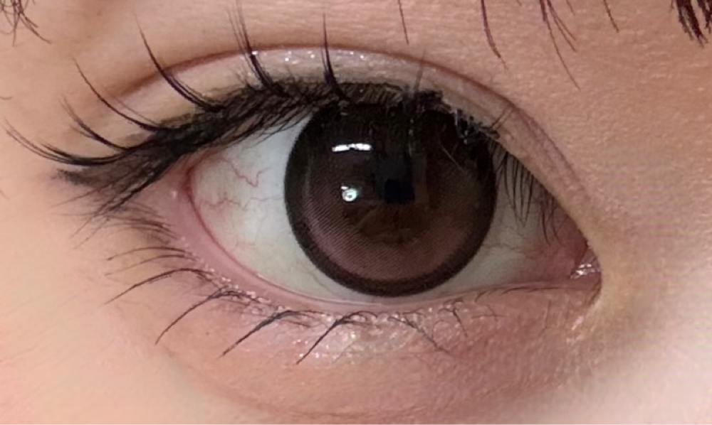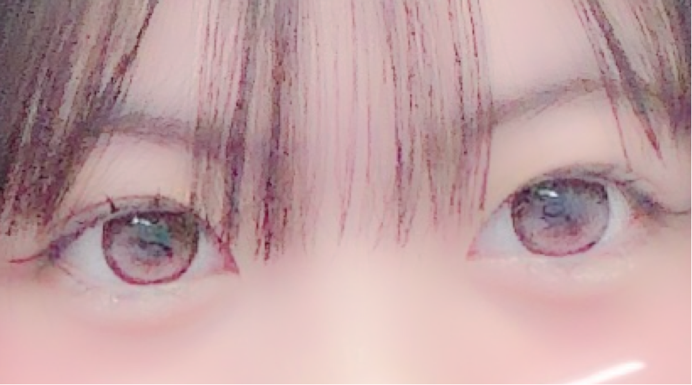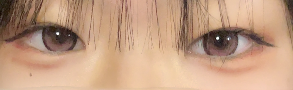 裸眼が焦げ茶〜黒なので少し遠くから見るとピンクっぽさはなく、なんか目ん玉の上下の色が違うな〜?くらいでした。