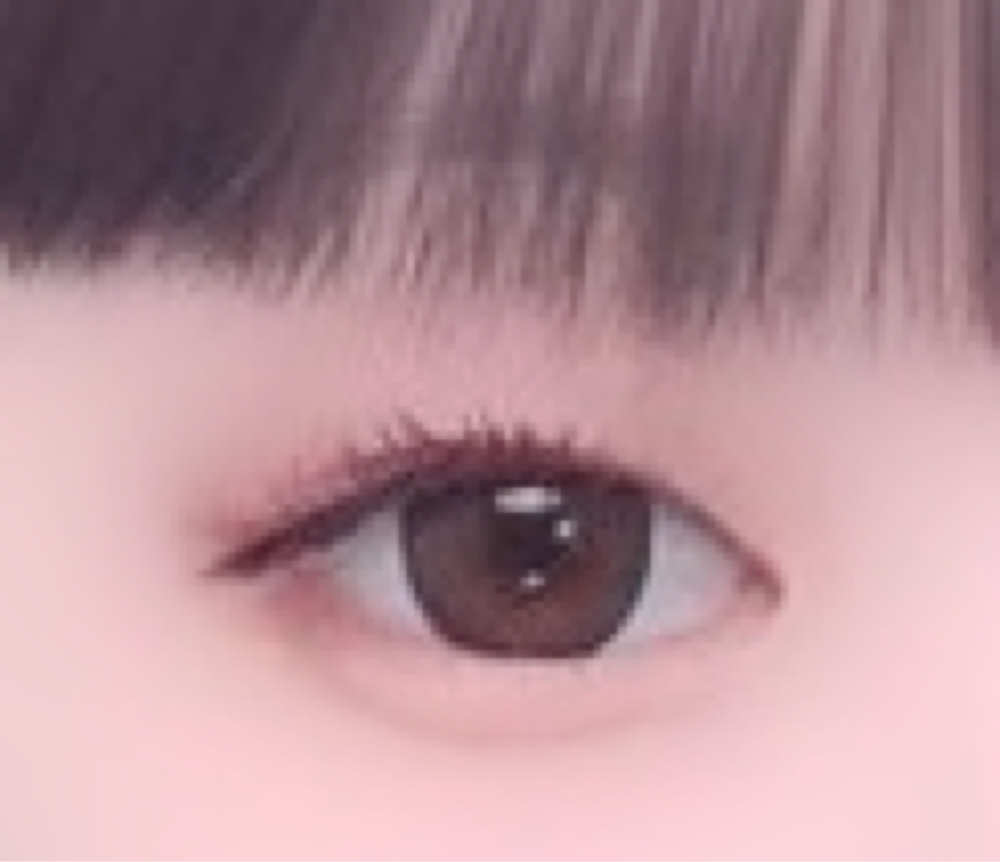 室内光 裸眼茶色です。フチ太めで赤ちゃんっぽい目になれます。パキッとしてるわけじゃなく、馴染む発色