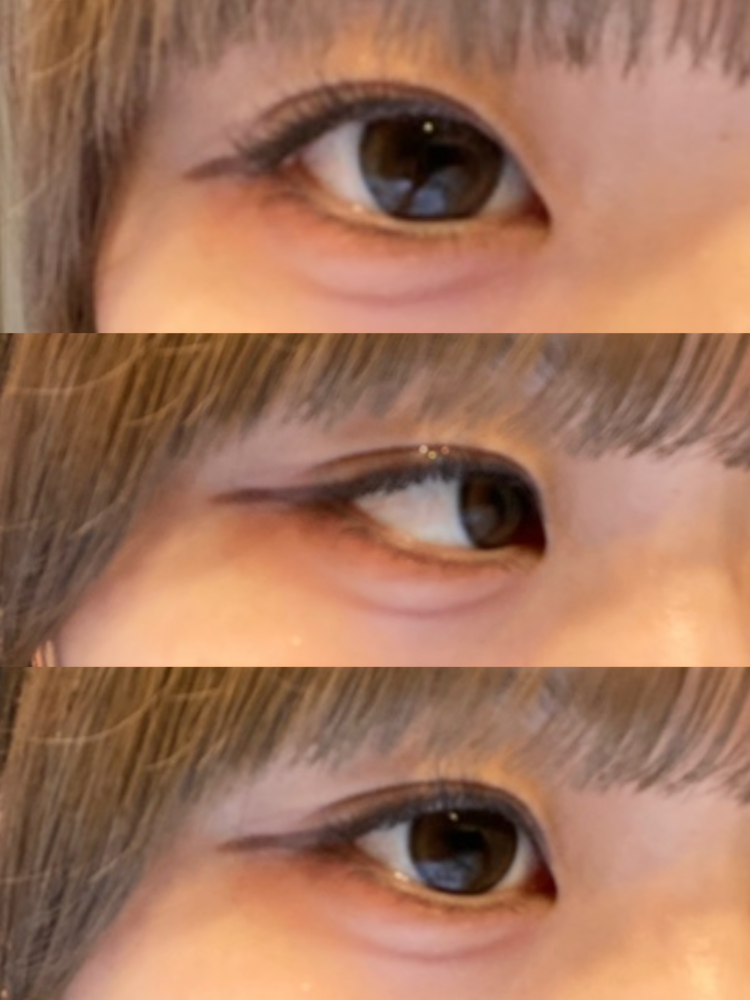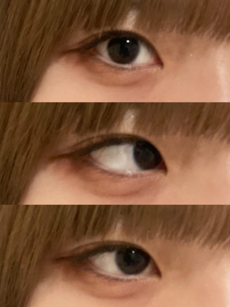 目を横にすると周りが青く、細フチが見えます!この細フチのおかげで目が少し大きく見えてナチュラル可愛さがあるなと思いました!