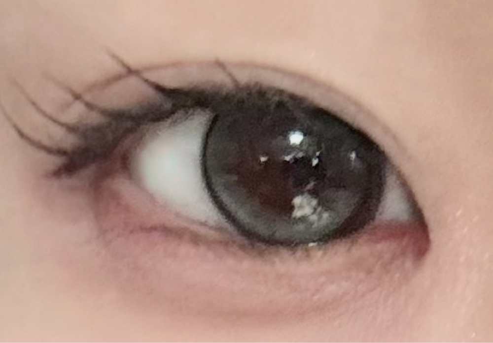 私は目が真っ黒でカラコン発色しないことがよくあるけど(例えばキャ◯マジ3番の内側はほぼ発色しない)これはちゃんと発色した!水光部分もしっかり分かる。水光カラコンにありがちな、ハイライト部分は別の色塗ってますよ感がなく、自然に目がうるうるして見える。