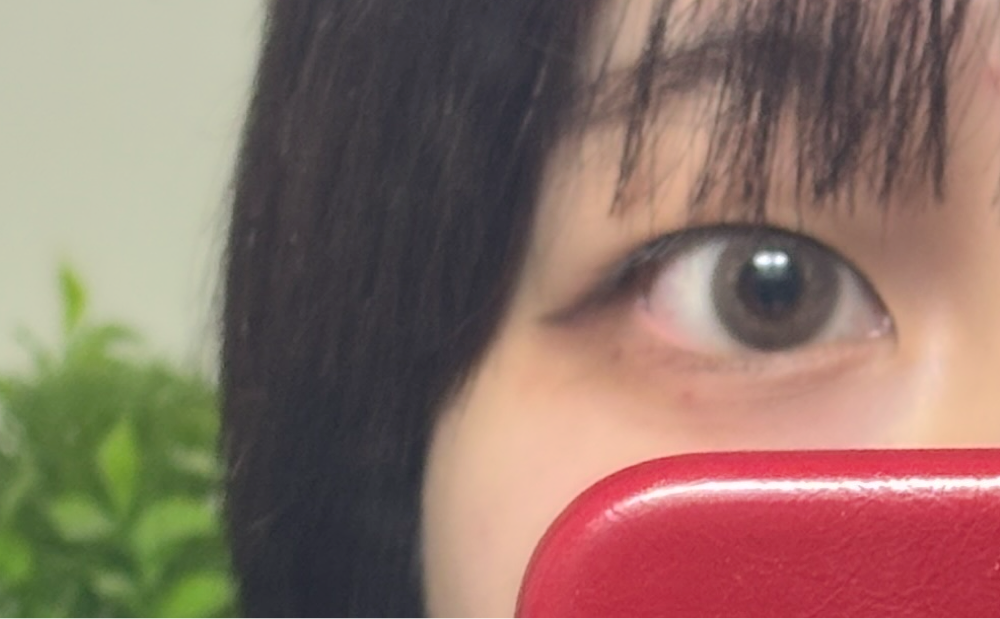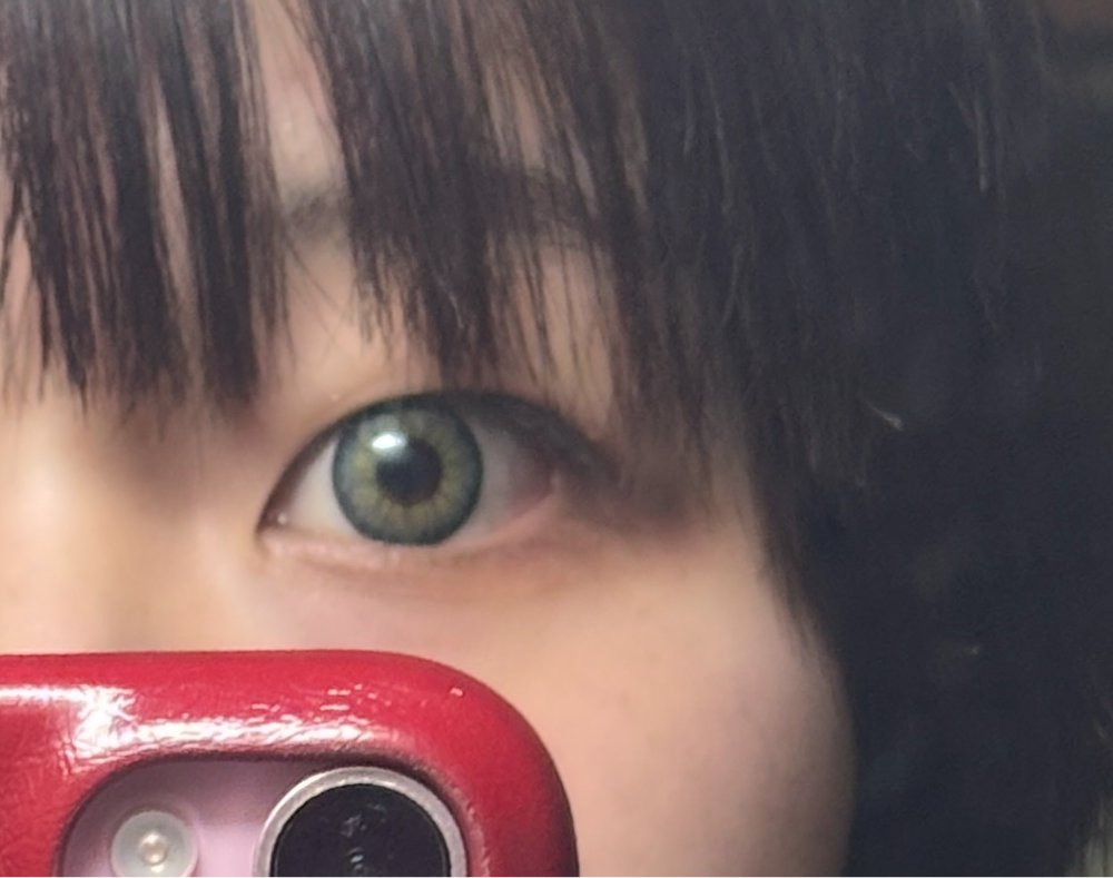 写真で伝わないのが悔しい!!!グレーっぽさもありながら紫や緑もあって、ほあほあした目元にしてくれる。あんまり派手すぎないのに他との格の違いを見せつけられるカラコンです^_−☆