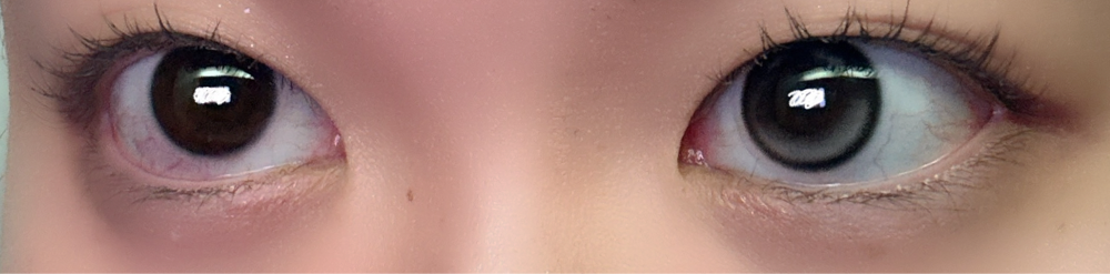 1枚目の向かって左が裸眼、向かって右がカラコン装着