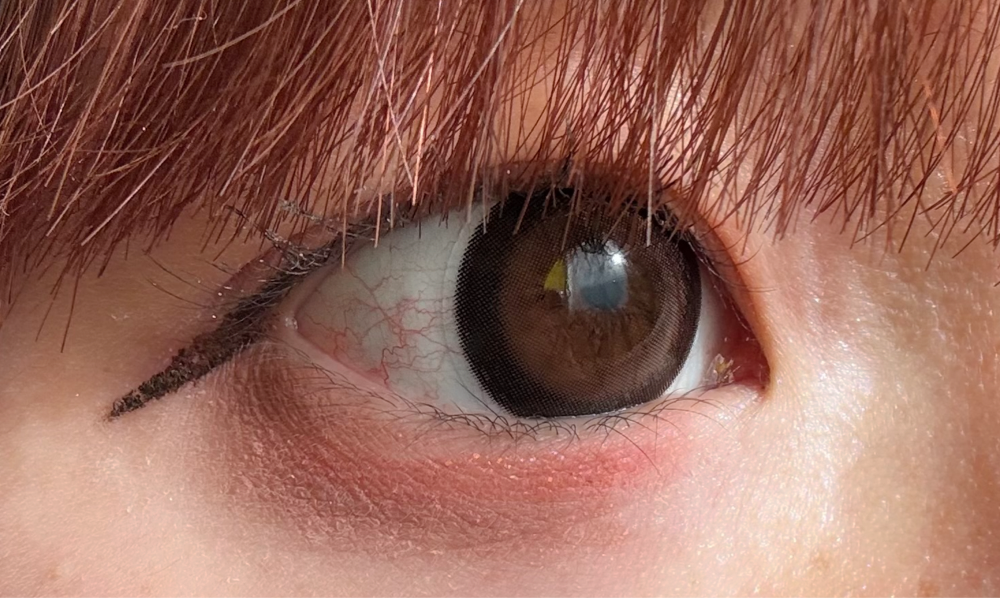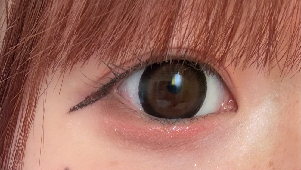 焦茶目よりの黒目ですが縁が黒いのでカラコンの存在感は増します!裸眼とカラコンの間に白目が透けることもなかったです!