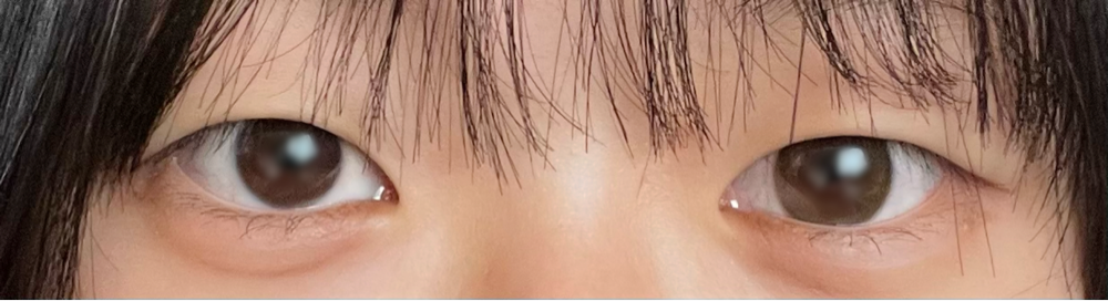 内カメ無加工、右がカラコン左が裸眼です!!!黒目を自然に大きくした感じで使いやすいです😘何時間もつけてると乾燥したりゴロゴロした感じありました🥲🥲