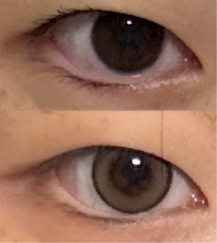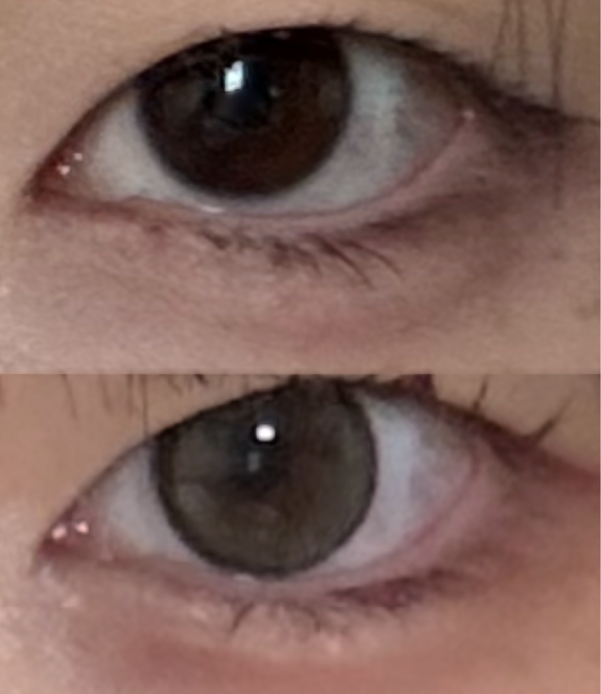 細縁でくっきりしてると思いきや離れて見てみると白目に馴染んでめちゃかわ