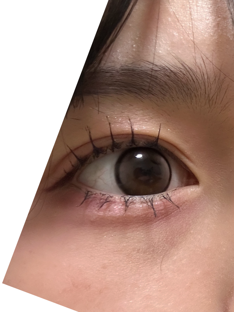 自然光 裸眼黒目です 結構茶色く発色します フチも太すぎず細すぎず可愛いです