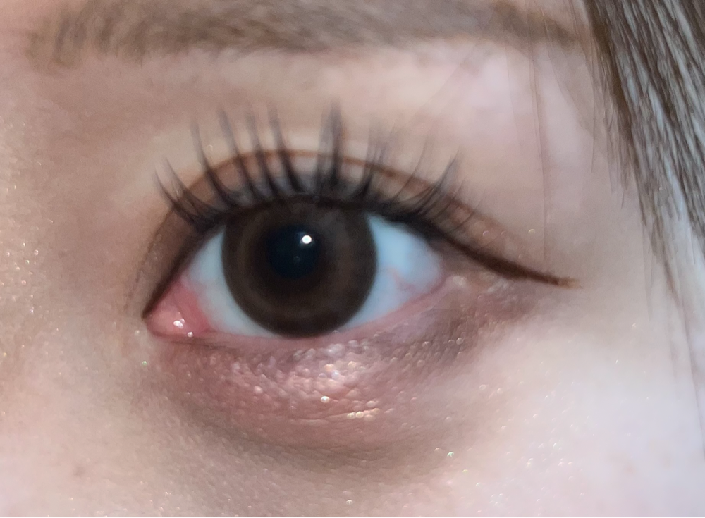装着してみましたが、体感プランプブラウンよりはフチもくっきりなので目の印象がパキッとしました。結構明るめブラウンなので、イエベ春で茶髪の方には似合うのかなという印象です。