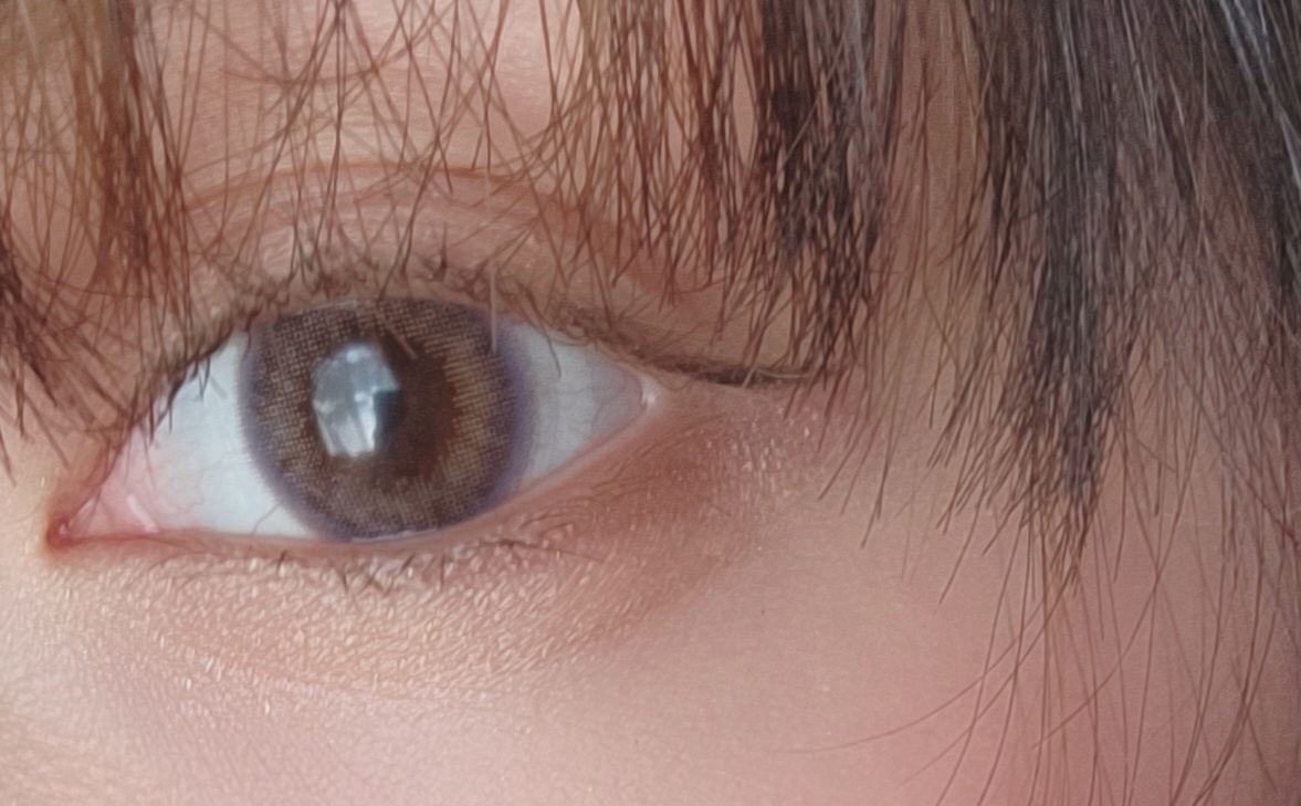 レンズだけで見ると浮いちゃうかなと不安でしたが、サイズが大きすぎない事もあり、透け感も丁度良く、わざとらしくない瞳になりました。