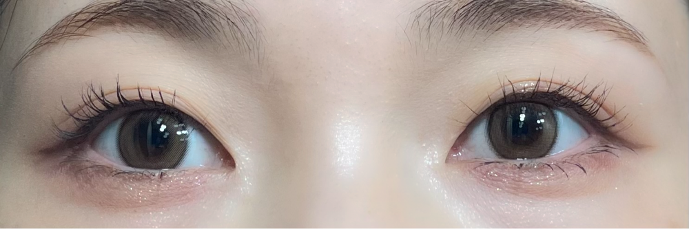 元の目の色は黒目寄りのこげ茶です。写真は自然光です。派手すぎず、程よく発色してくれてグレーになります。目に光が入ったように見えるので黒目さんでも使えるかと◯つけ心地は個人差あるかと思いますが、私は普通でした。